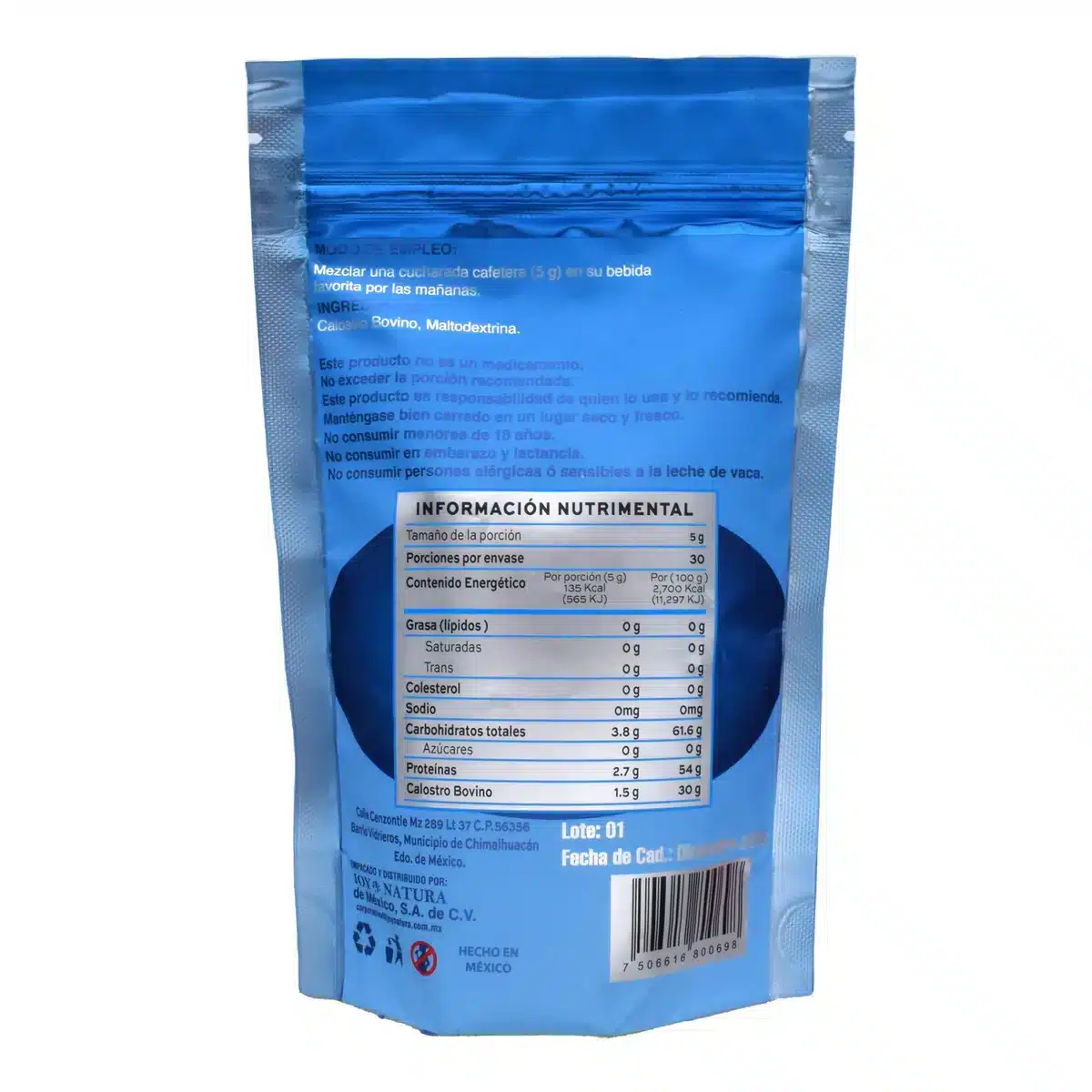 Calostro Bovino resulta especialmente útil en protocolos de rehabilitación y fases de crecimiento, aportando soporte inmunitario y reparador natural con fácil administración y altos estándares. Conserva en lugar fresco y seco, fuera del alcance de los niños; respete la fecha de caducidad indicada en el envase y almacene correctamente siempre. Ideal para deportistas, madres lactantes y personas con sistemas inmunitarios comprometidos, potencia la recuperación funcional y la resistencia ante esfuerzos continuos mejorando rendimiento y bienestar. Nuestra presentación de 150 g ofrece dosis precisas; cada envase asegura suministro para semanas de apoyo inmunológico y nutricional con instrucciones claras y soporte técnico.