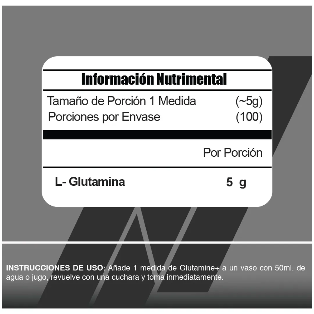 La L-Glutamina  es uno de los aminoácidos más abundantes de los músculos y uno de los suplementos más usados por atletas ya que durante el ejercicio y actividad física intensa los niveles de glutamina pueden bajar. Es importante repletar los niveles glutamina en el cuerpo para dar combustible a las células musculares, apoyar el metabolismo proteico y tener una óptima recuperación después de los entrenamientos.