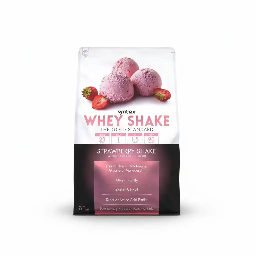 Whey Shake Syntrax Proteína 5 Lb es un suplemento premium diseñado para potenciar tu rendimiento y acelerar la recuperación tras entrenamientos intensos. Con una fórmula basada en concentrado y aislado de suero de leche (proteina de la leche), Syntrax utiliza Promina® Cold-Filtered para preservar péptidos bioactivos y BCAA de alta calidad. Cada porción aporta 24 g de proteina whey y un perfil completo de aminoácidos esenciales, facilitando la síntesis proteica y minimizando el catabolismo muscular.